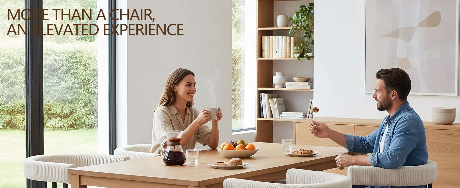 ● Sandaran Ergonomis Berbentuk U: Dirancang untuk menopang pinggang dan punggung dengan nyaman, ideal untuk makan, bekerja, atau bersantai.