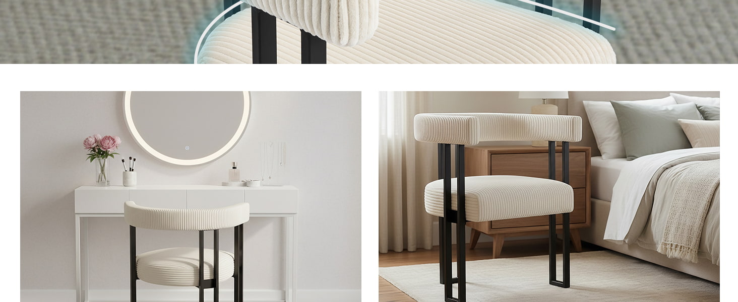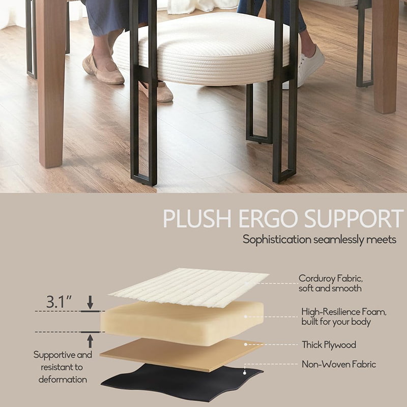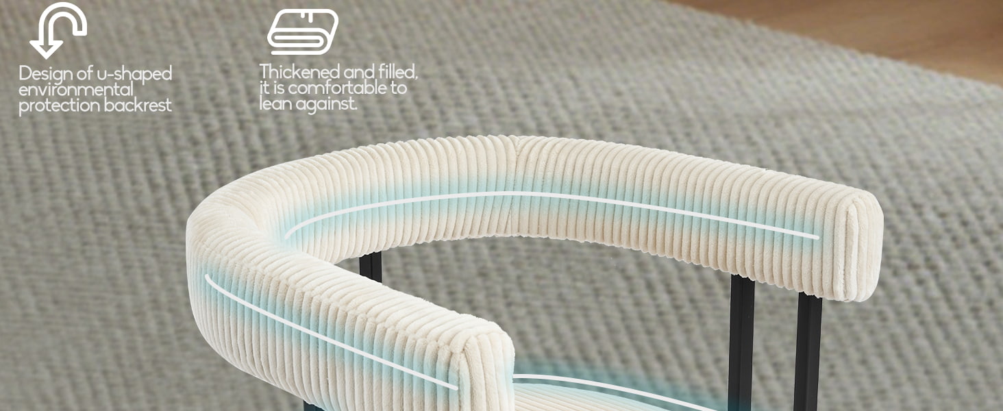 Kursinya diisi dengan busa berketahanan tinggi yang mempertahankan bentuknya seiring waktu, memberikan dukungan yang andal baik digunakan di meja makan, meja rias, atau meja kantor di rumah. Sandaran punggung berbentuk U yang dirancang dengan cermat memberikan dukungan ergonomis untuk pinggang dan punggung, membantu mengurangi kelelahan saat duduk dalam waktu lama.