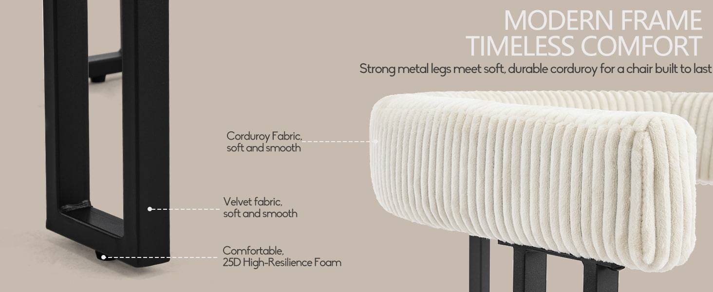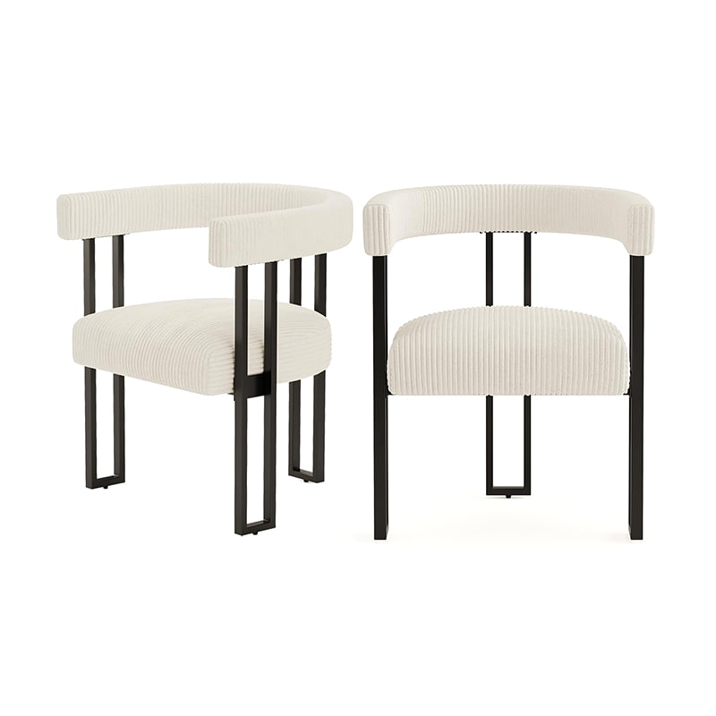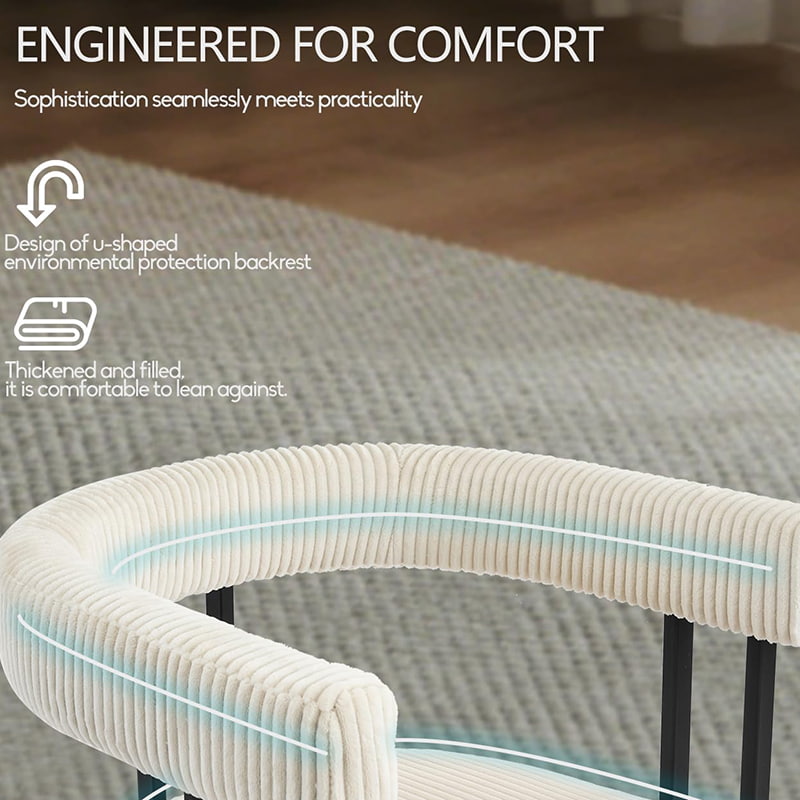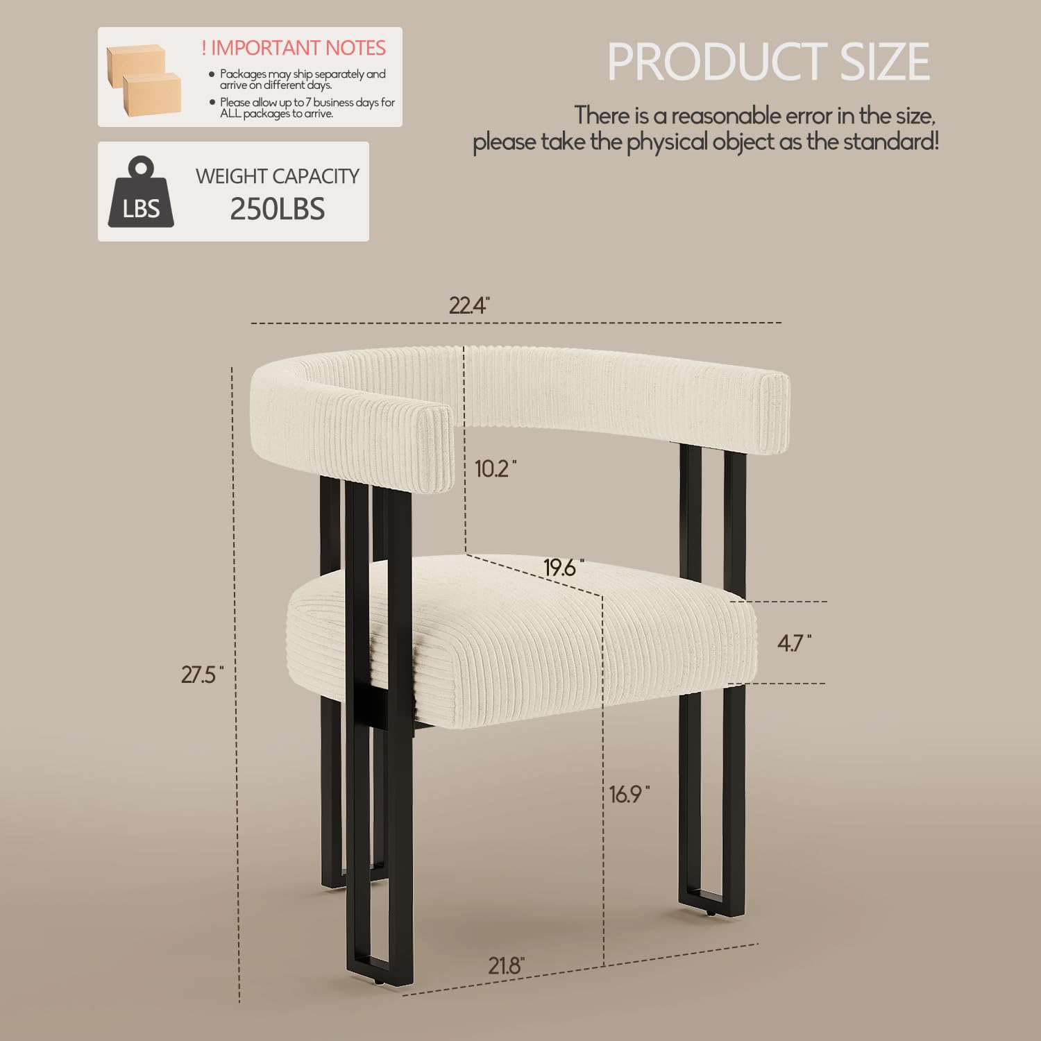 Kursi Makan Boucle, Kursi Ruang Makan Berlapis Korduroi Putih dengan Kaki Logam, Kursi Aksen Modern Abad Pertengahan