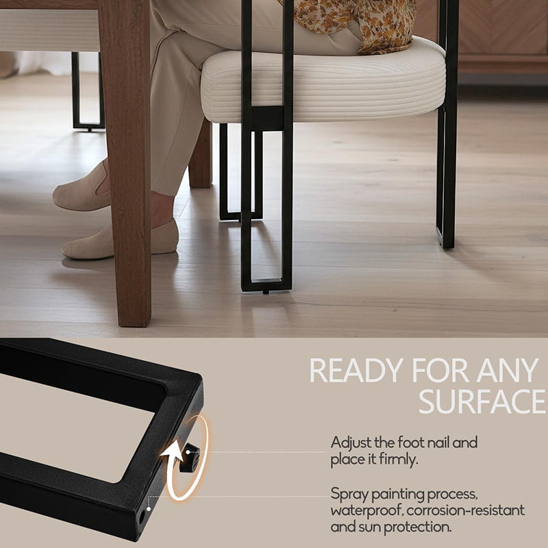 Didukung kaki metal berlapis kokoh dengan bantalan kaki anti slip yang dapat disesuaikan, kursi makan ini tetap stabil sekaligus melindungi lantai Anda. Dengan siluet abad pertengahan yang bersih dan warna putih netral, ruangan ini berpadu sempurna dengan ruang makan, dapur, ruang tamu, kamar tidur, atau ruang belajar.