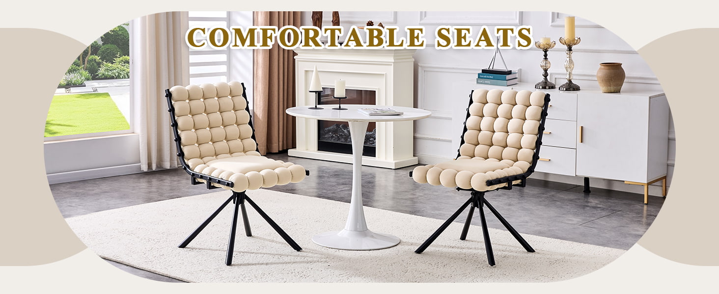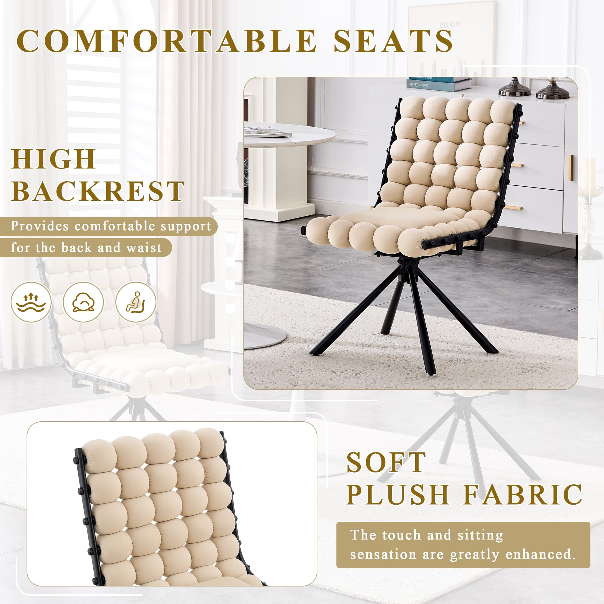 Kursi Makan Putar Beludru dengan Sandaran Bantalan Gelembung, Kursi Aksen Berlapis dengan Kaki Logam (Tanpa Roda)