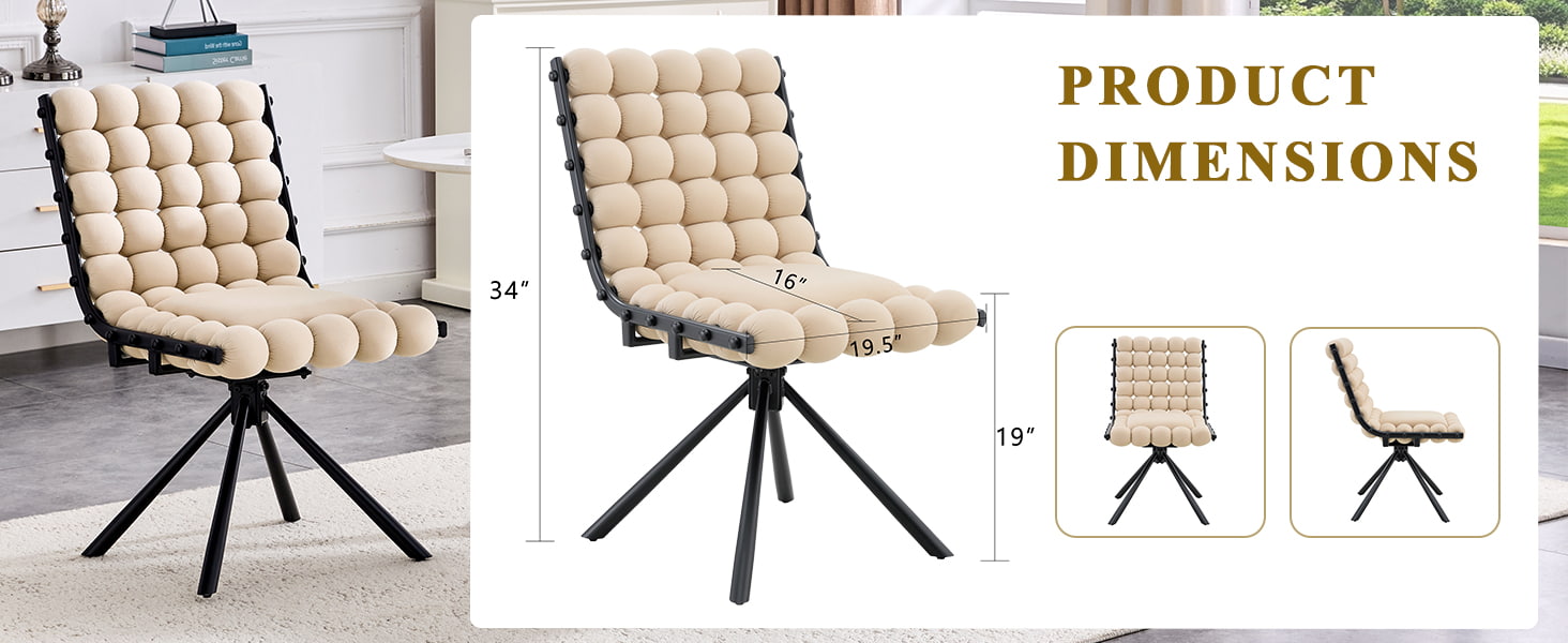 Kursi makan putar beludru ini dirancang untuk ruang makan modern, interior gaya hidup, dan lingkungan komersial butik. Menampilkan sandaran bantalan gelembung pahatan dan pelapis beludru Belanda yang halus, kursi ini memadukan desain menarik dengan kenyamanan sehari-hari. Fungsi putar 360 derajat memungkinkan pergerakan yang fleksibel, sedangkan kaki logam yang kokoh dan alas tanpa roda memberikan stabilitas yang andal untuk ruang makan, ruang keluarga, area rias, dan tempat duduk kafe. Punggungnya yang melengkung dan ergonomis serta bantalan spons berketahanan tinggi membantu mendistribusikan tekanan tubuh secara merata, memberikan dukungan yang nyaman saat duduk dalam waktu lama.