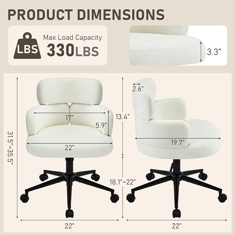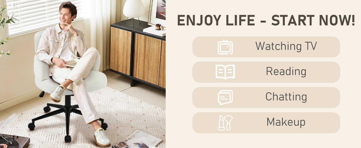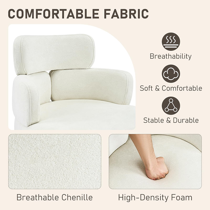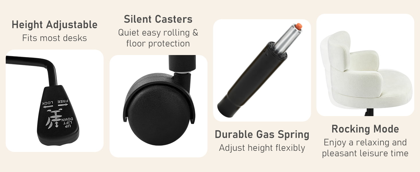 Dibalut kain chenille yang menyerap keringat dan ditopang bantalan busa tebal, kursi ini memberikan kenyamanan jangka panjang untuk bekerja, membaca, atau bersantai. Ketinggian tempat duduk yang dapat disesuaikan, putaran 360° yang mulus, dan fungsi goyang yang lembut memungkinkan pengguna menyesuaikan posisi duduknya dengan mudah. Basis logam kokoh dengan roda senyap memastikan stabilitas, mobilitas, dan perlindungan lantai—menjadikannya solusi tempat duduk yang praktis dan elegan untuk kehidupan kontemporer.