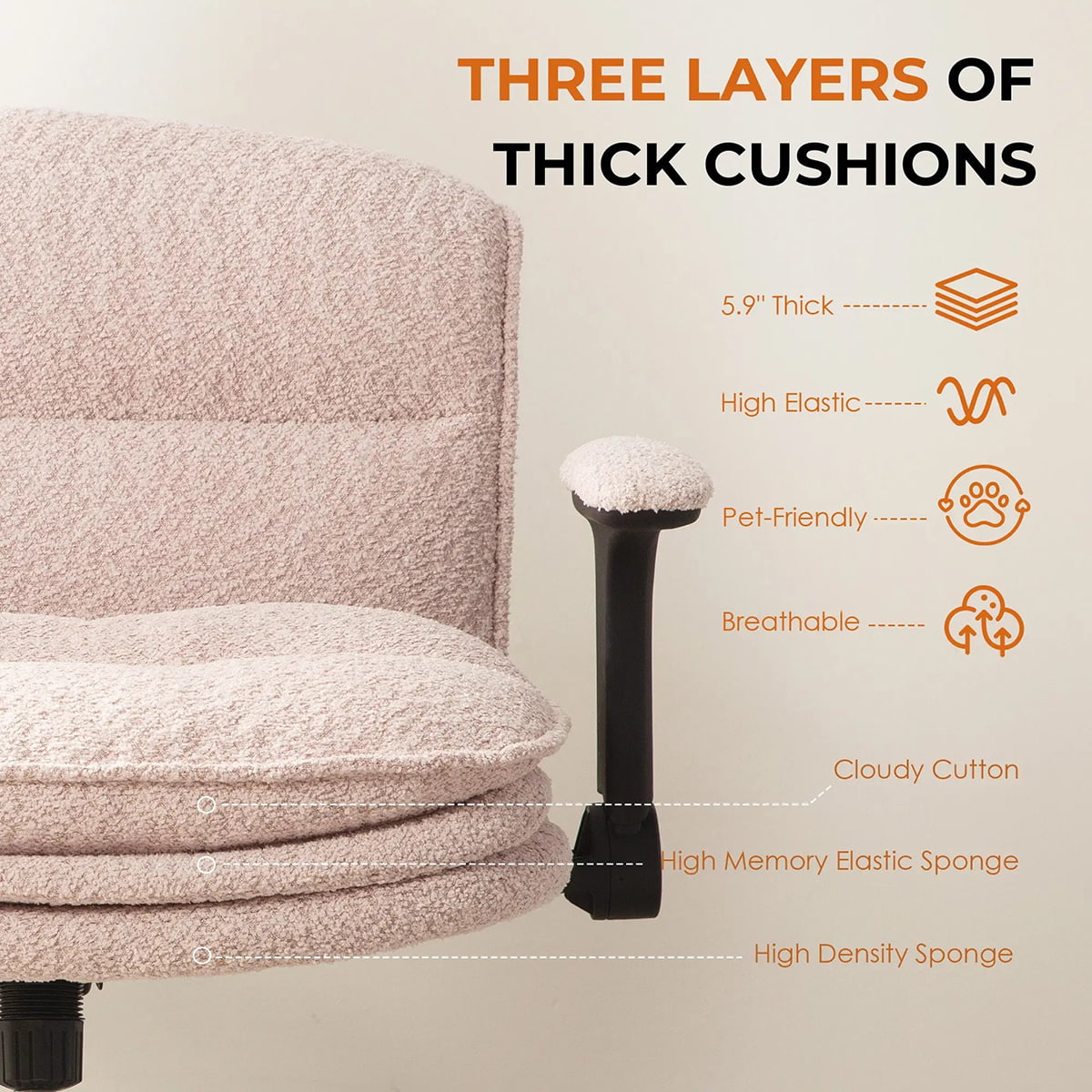 ② Kursi Meja Berkaki Silang Ergonomis dengan Sandaran Tangan yang Dapat Disesuaikan, Bantal Putar 360° & Tebal — Kursi Kantor Rumah Bouclé