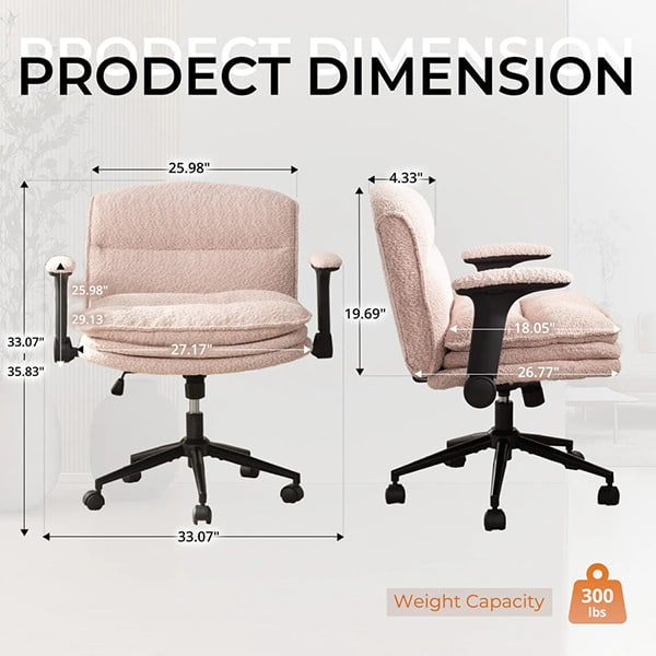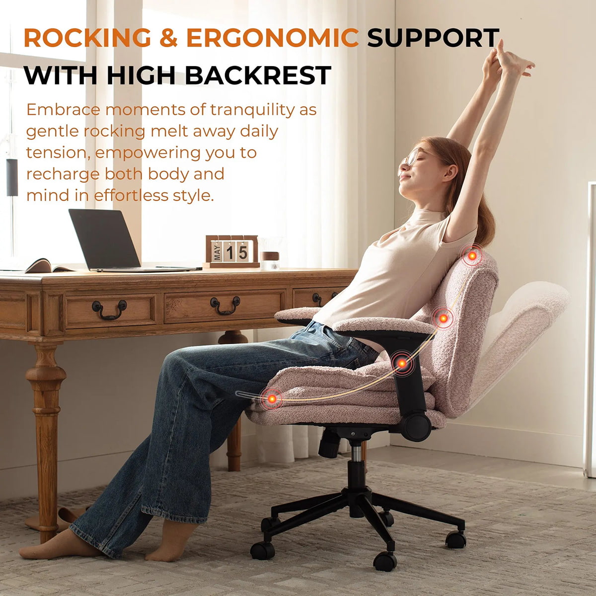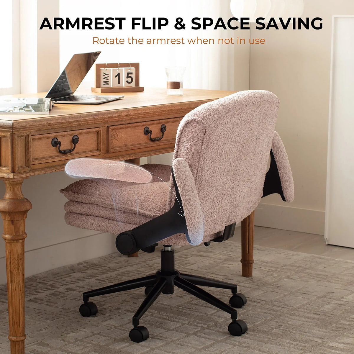 ① Kursi Kantor Saling Silang dengan Lengan Flip-Up & Bantalan 3 Lapis — Kursi Meja Bouclé Ergonomis Kursi Lebar dengan Roda