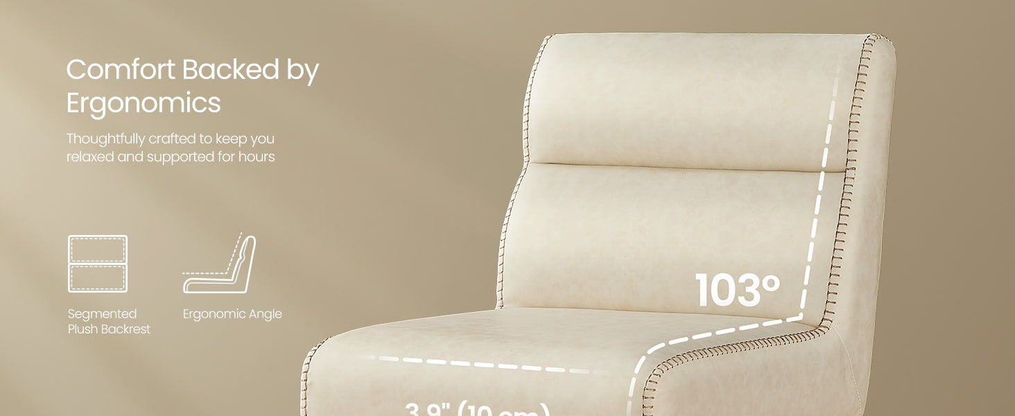 ● Sandaran punggung tersegmentasi 103° yang ergonomis untuk penyangga pinggang yang seimbang