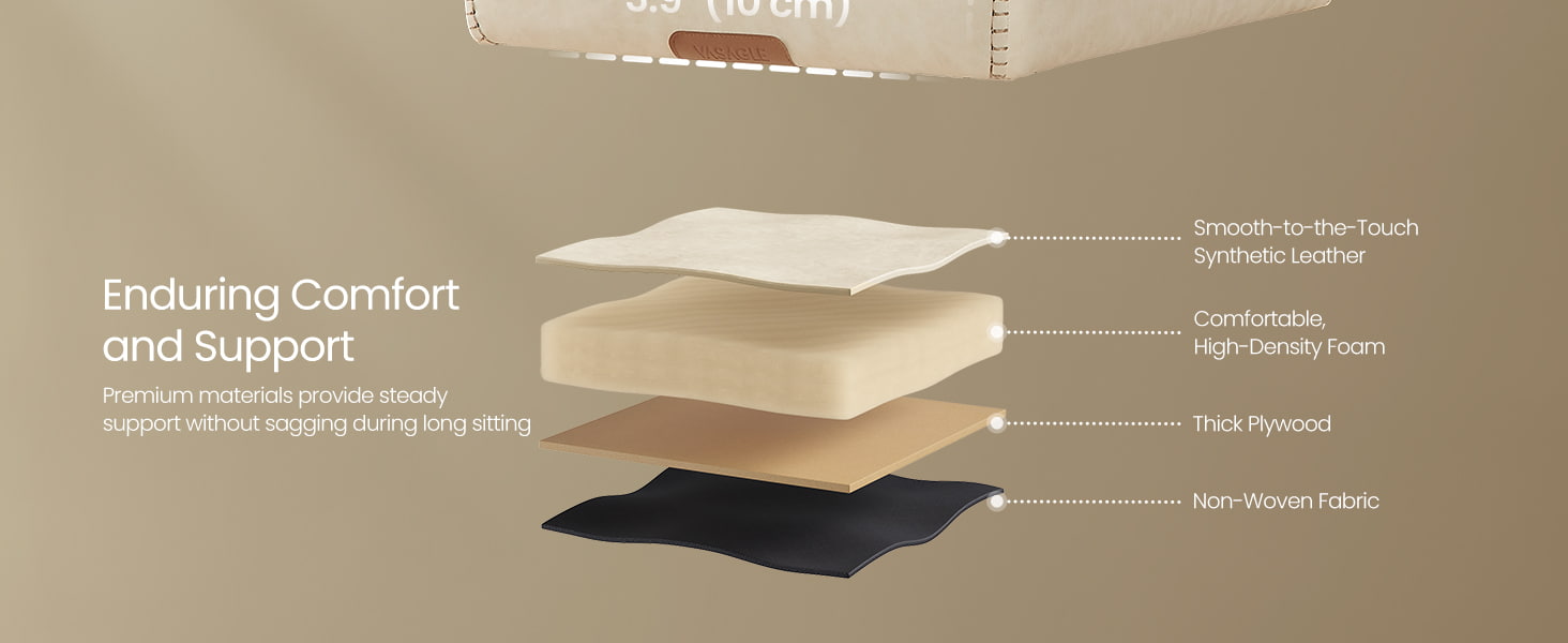 ● Permukaan kulit sintetis yang mudah dibersihkan untuk penggunaan sehari-hari